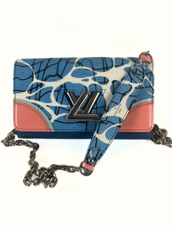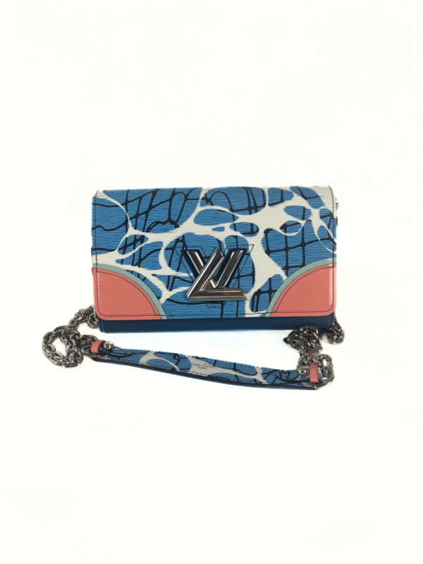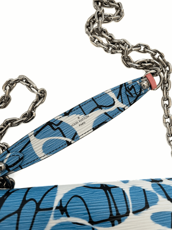 Louis Vuitton Twist Chain Aqua Print to elegancka torebka, która łączy w sobie klasykę z nowoczesnym stylem. Jej charakterystyczny design wyróżnia się unikalnym nadrukiem w odcieniach aqua, który nadaje jej świeżości i lekkości.